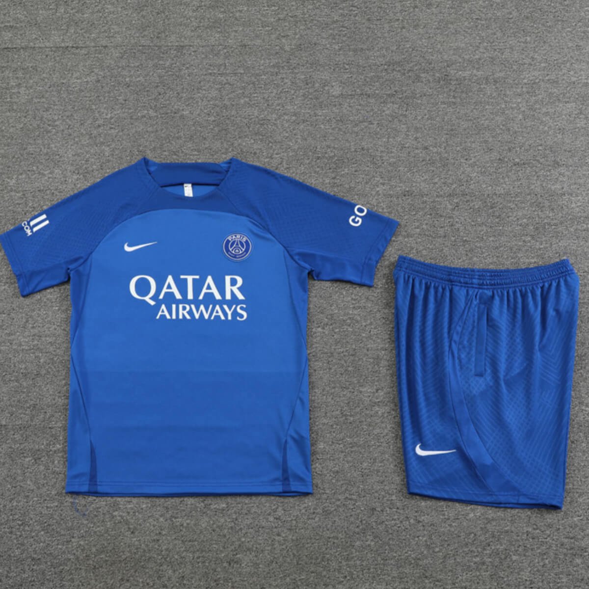 Vista-se com o Conjunto PSG Treino Camisa e Short Azul 2022/23 com valor promocional. Logo mais o Conjunto PSG Treino Camisa e Short Azul 2022/23, por outro lado o destaque está a no bordado do Kit, trazendo conforto e estilo para o dia a dia ou para atividades físicas. Confira os detalhes do conjunto logo abaixo.