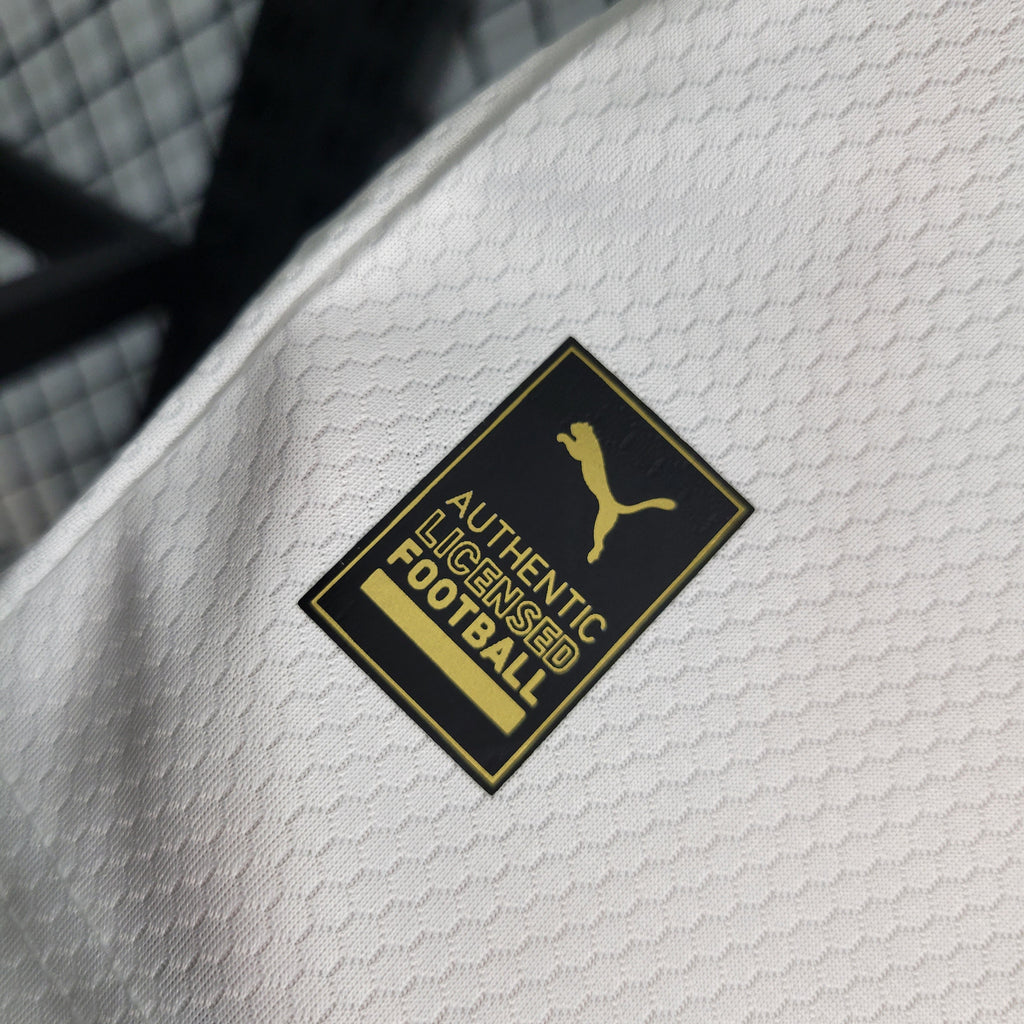 A camisa reserva do Palmeiras para 2023 celebra a união do passado e presente, inspirada nas arquibancadas com faixas, flâmulas e bandeiras. O design branco com faixa diagonal representa os títulos e a paixão da torcida, unindo um passado glorioso ao futuro de conquistas na Terceira Academia!
