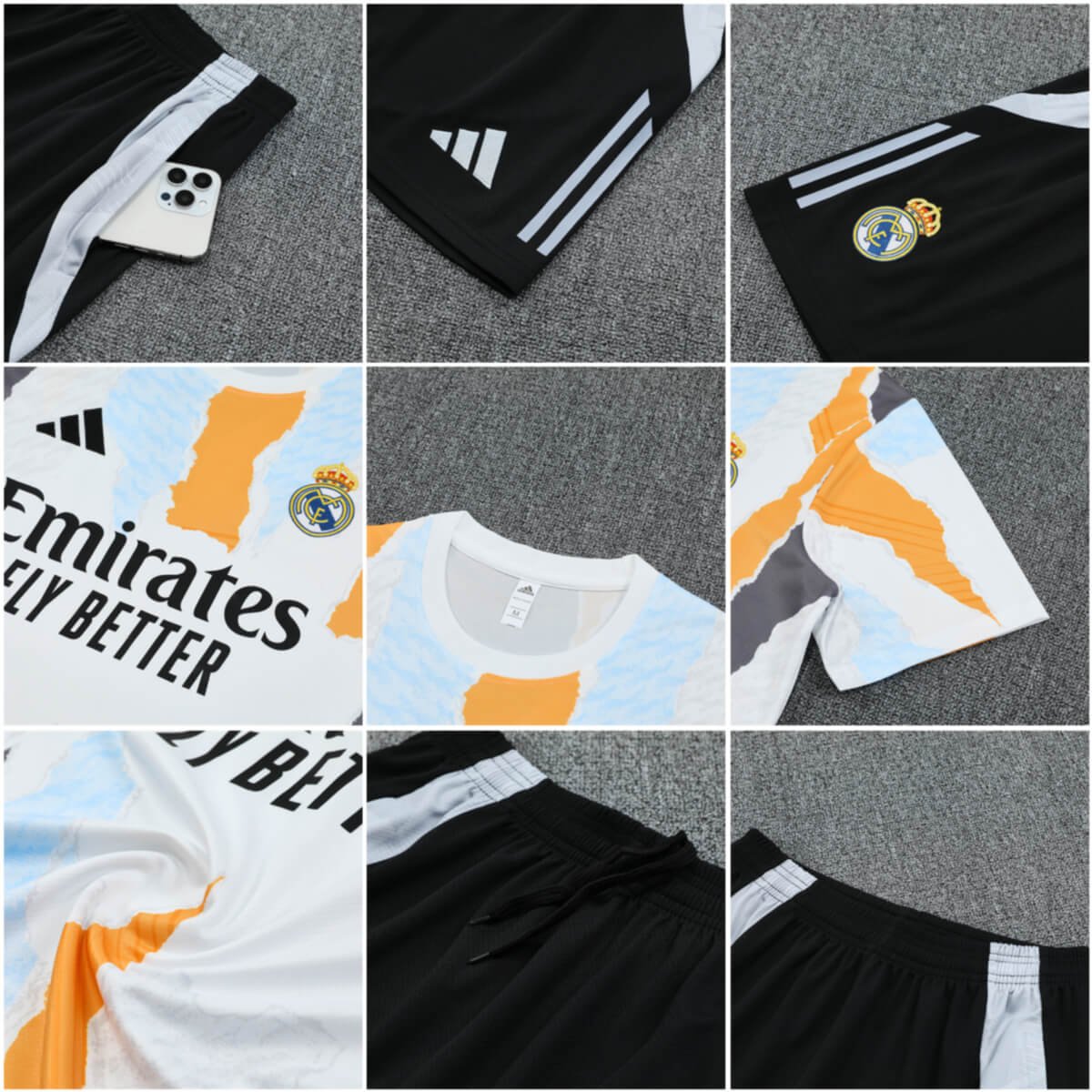 Vista-se com o Kit Short e Camisa do Real Madrid Treino Laranja 2024/25 com valor promocional. Logo o Kit Short e Camisa do Real Madrid Treino Laranja 2024/25 Fabricado e produzido pela Adidas tem o seu destaque no bordado do Conjunto, trazendo conforto e estilo para o dia a dia ou para atividades físicas. Confira os detalhes do conjunto logo abaixo.