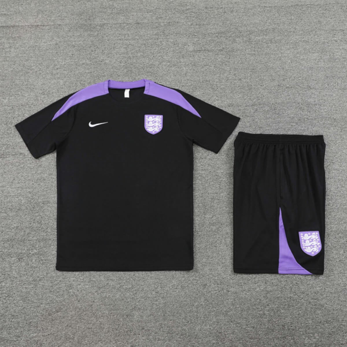 Vista-se com o Kit Short e Camisa Inglaterra Treino Preto 2024/25 com valor promocional. Logo o Kit Short e Camisa Inglaterra Treino Preto 2024/25 Fabricado e produzido pela Nike tem o seu destaque no bordado do Conjunto, trazendo conforto e estilo para o dia a dia ou para atividades físicas. Confira os detalhes do conjunto logo abaixo.
